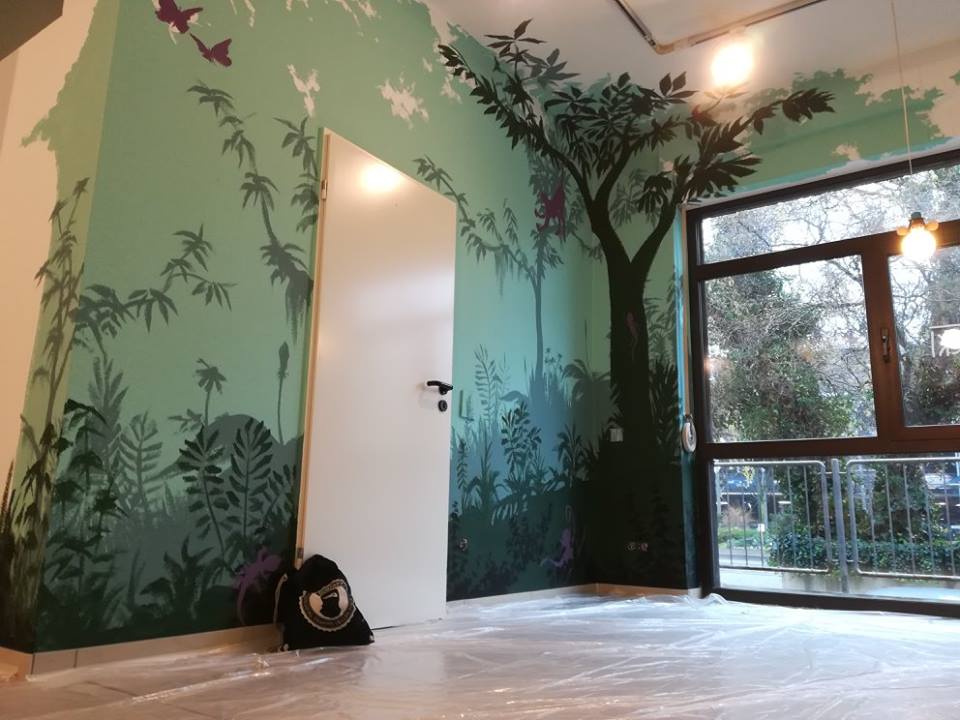 Wandgestaltung, wandmalerei, handgemalte wandbespannung, wandbild, wohndesign.